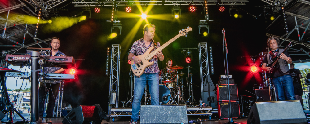 Slinky Machine are Pete Earle (bass), John Robertson (guitar), Jack Revy (drums), Rory Francis (percussion) and Ian Kindred (keys).