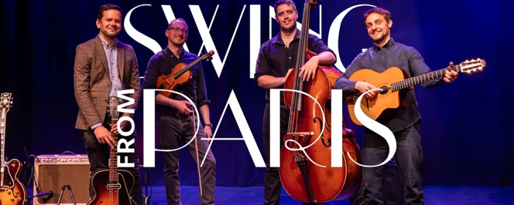 Swing from Paris are a quartet of violin (Fenner Curtis), guitars (Andy Bowen and Sam Hughes) and double bass (Tomasz Williams), inspired by the great swing bands of the 1930s, ’40s and ’50s such as Benny Goodman, Charlie Christian, Django Reinhardt, Stéphane Grappelli and the Hot Club of France.